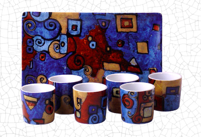 Chupito: 4,5 cm diámetro x 4,5 cm altura Bandeja: 20 x 13 cm.