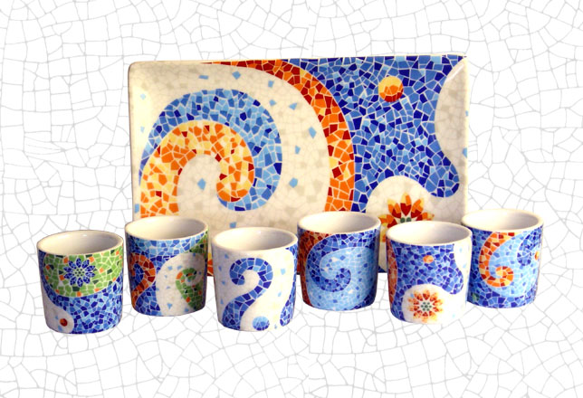 Chupito: 4,5 cm diámetro x 4,5 cm altura Bandeja: 20 x 13 cm.