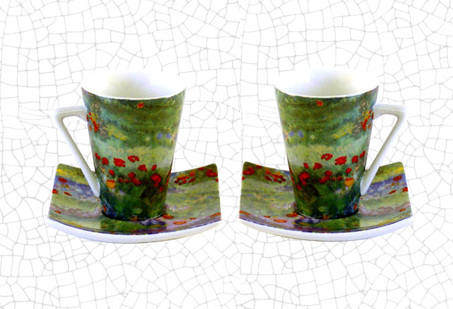 Medidas: plato 8,5 x 8,5 cm. Taza 5 cm diametro, 7 cm altura