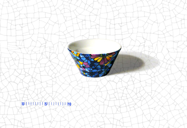 Medidas: 6,5 cm altura, 12 cm diám. superior, 6,5 cm diám. inferior
