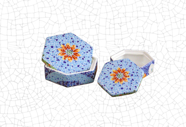 Mariposa sobre caja hexagonal