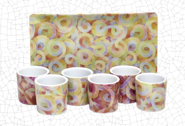 Chupito: 4,5 cm diámetro x 4,5 cm altura Bandeja: 20 x 13 cm.