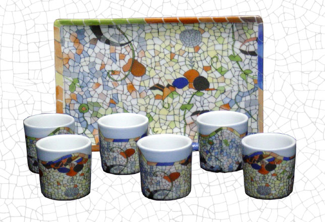 Chupito: 4,5 cm diámetro x 4,5 cm altura Bandeja: 20 x 13 cm.