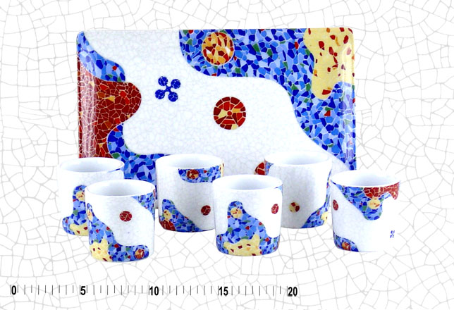 Chupito: 4,5 cm diámetro x 4,5 cm altura Bandeja: 20 x 13 cm.