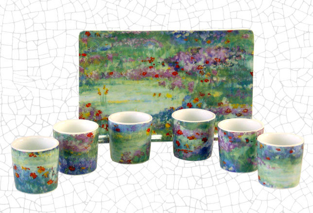 Chupito: 4,5 cm diámetro x 4,5 cm altura Bandeja: 20 x 13 cm.