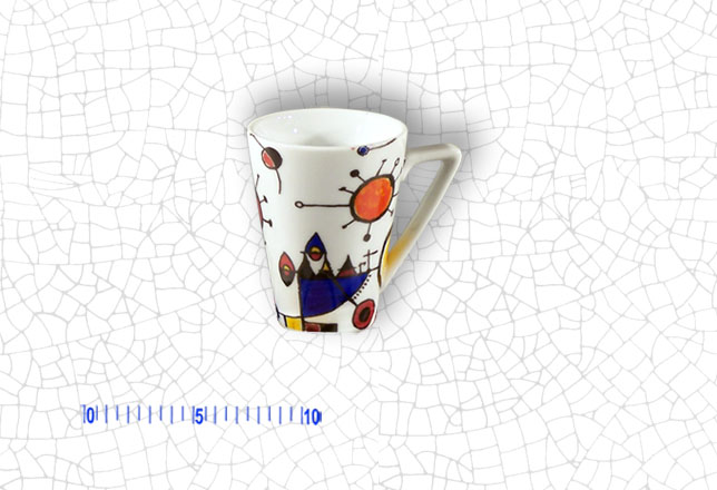 Mug : 7 cm diámetro, 9 cm altura.