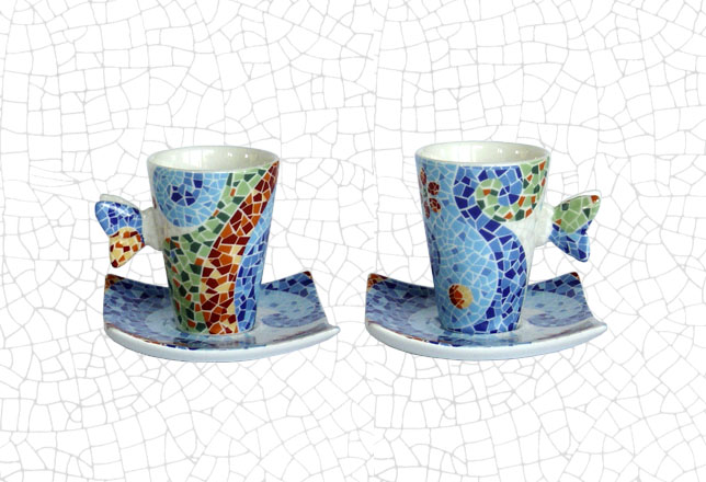 Plato 8,5 x 8,5 cm. Taza 5 cm diametro, 7 cm altura |