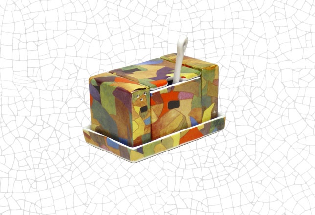 Salsera con tapa y cuchara: 7 x 7 x 7 cm.