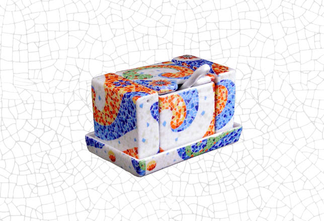 Salsera con tapa y cuchara: 7 x 7 x 7 cm.