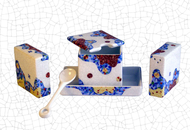 Salsera con tapa y cuchara: 7 x 7 x 7 cm.