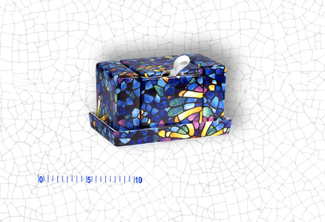 Salsera con tapa y cuchara: 7 x 7 x 7 cm.