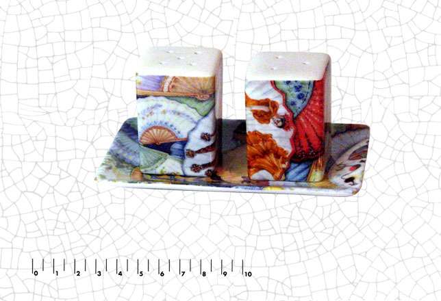 Salero: 4 x 4 x 5 cm. Bandeja: 13 x 9 cm.