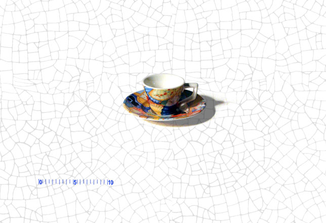 Medidas: Plato: 12,5 cm diámetro . . . . . . . . Taza: 6 cm altura, 5 cm diámetro