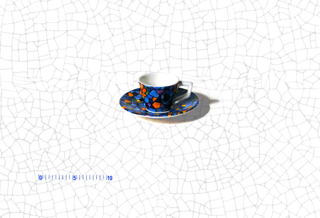 Medidas: Plato: 12,5 cm diámetro . . . . . . . . Taza: 6 cm altura, 5 cm diámetro