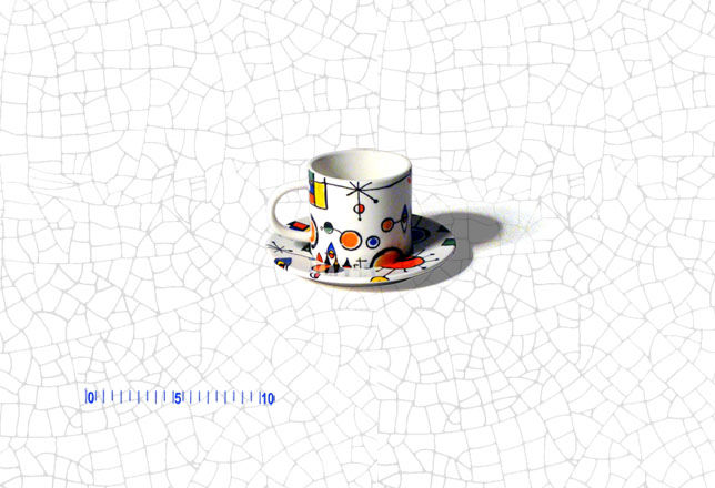 Medidas: Plato: 12 cm diámetro . . . . . . . . Taza: 6 cm altura, 5 cm diámetro