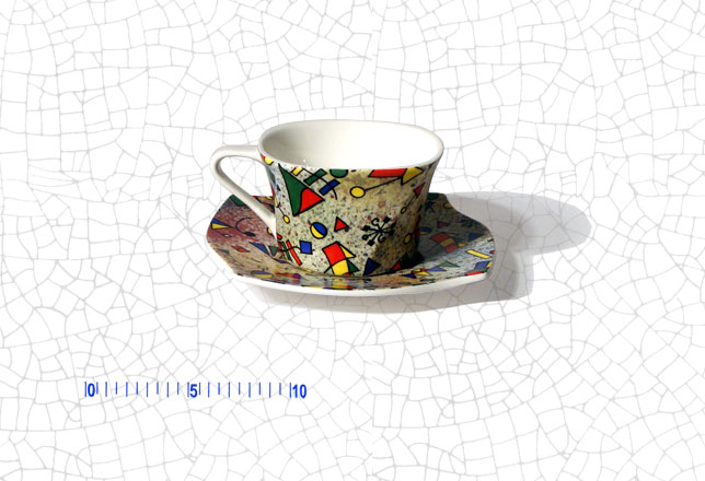 Medidas: Plato: 15 x 15 cm . . . . . . . . Taza: 6 cm altura, 9 x 9 cm