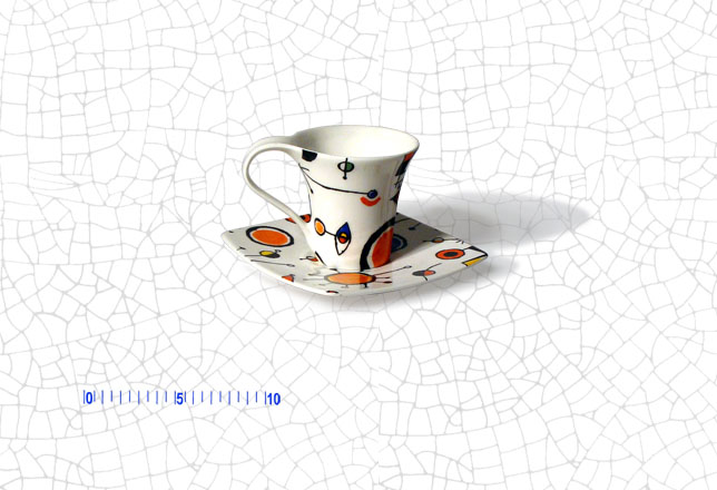 Medidas: Plato: 11 x 11 cm . . . . . . . . Taza: 6,5 cm altura, 6,5 cm diámero