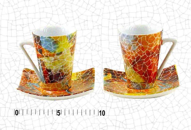Medidas: plato 8,5 x 8,5 cm. Taza 5 cm diametro, 7 cm altura