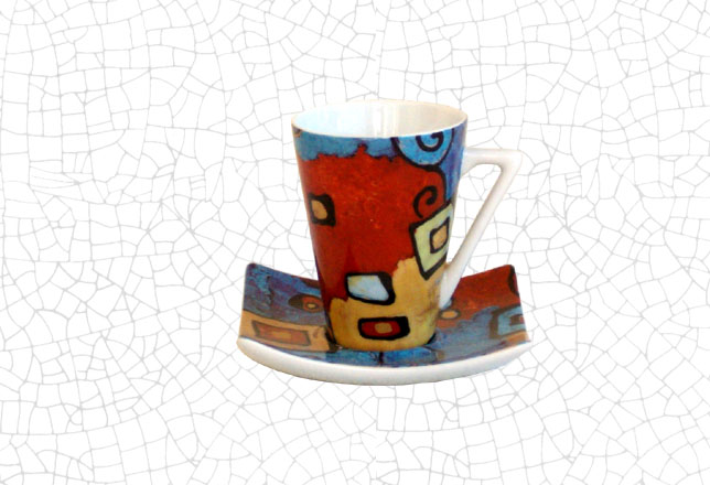 Medidas: plato 8,5 x 8,5 cm. Taza 5 cm diametro, 7 cm altura